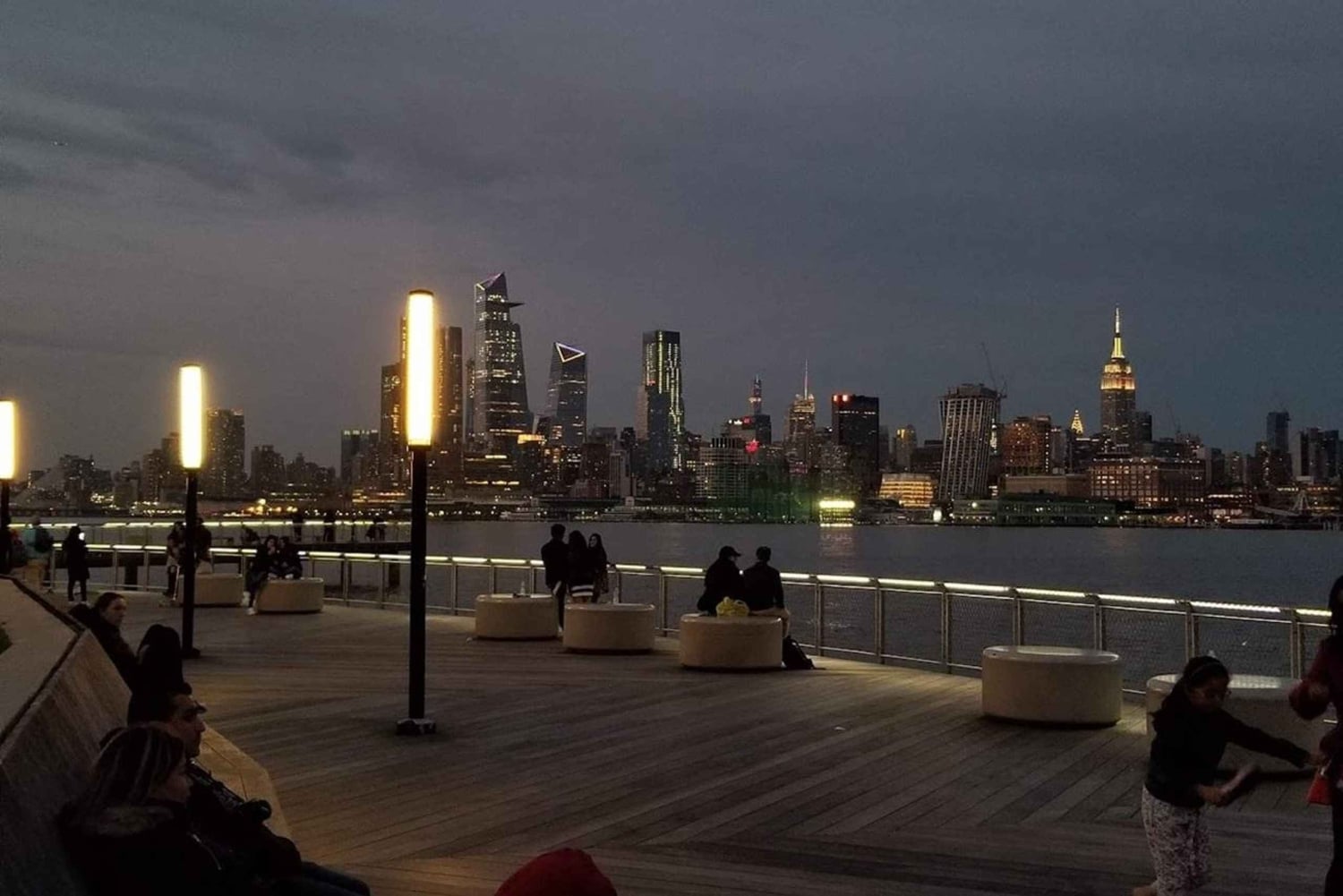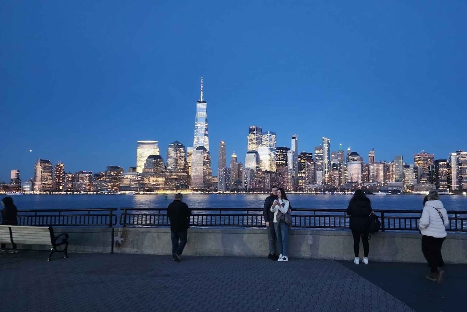 På denne hop-on, hop-off-tur, der afslører nogle af byens bedst bevarede hemmeligheder, kan du nyde de betagende panoramaudsigter over New Yorks skyline om aftenen. Tag betagende billeder af en af verdens mest storslåede skylines hele aftenen, når den oplyses af de flimrende lys fra kendte bygninger og monumenter. Intet behov for filtre! Medbring din eventyrlyst og et kamera, for vi giver vores gæster mulighed for at udforske New Jerseys havnefront, en af områdets bedst bevarede hemmeligheder. Vores kyndige guider vil tage dig med på en tur fyldt med fantastiske udsigter, historie, filmiske hemmeligheder og andre lidet kendte detaljer om drømmenes by. Der er helt sikkert noget for enhver smag. Beundre de store, billedskønne udsigter over nogle af de mest kendte steder i verden, såsom Brooklyn Bridge, Ellis Island, One World Trade Center, Empire State Building, Times Square og Frihedsgudinden, uanset hvor du vender dig hen. Derudover vil besøgende få en gribende og unik oplevelse, når de ankommer til Empty Sky Memorial. Dette mindesmærke blev bygget til minde om ofrene for 9/11 Twin Tower, og fremtidige generationer vil altid kunne besøge dette sted og reflektere over disse menneskers liv og bidrag. Imellem vores sightseeing-udflugter har vi tid til at forkæle os selv med noget lækkert mad. Nyd et bredt udvalg af lækre kager og søde sager i det legendariske Carlo's Bakery, som har været en fast bestanddel af Hoboken siden 1910 og er kendt af mange turister fra tv-programmet 'Cake Boss'. De levende nuancer i New Yorks bybillede kommer til live lige for øjnene af dig, når tusmørket sænker sig i horisonten. Den betagende udsigt over Manhattan fra Hamilton Park, oplyst af millioner af glitrende lys på den anden side af Hudson River, vil være aftenens hovedattraktion. Den berømte skyline, der strækker sig ud foran dig, vil tryllebinde dig på vores NYC Panoramic Night Tour og efterlade et varigt indtryk i dit hjerte.Includes