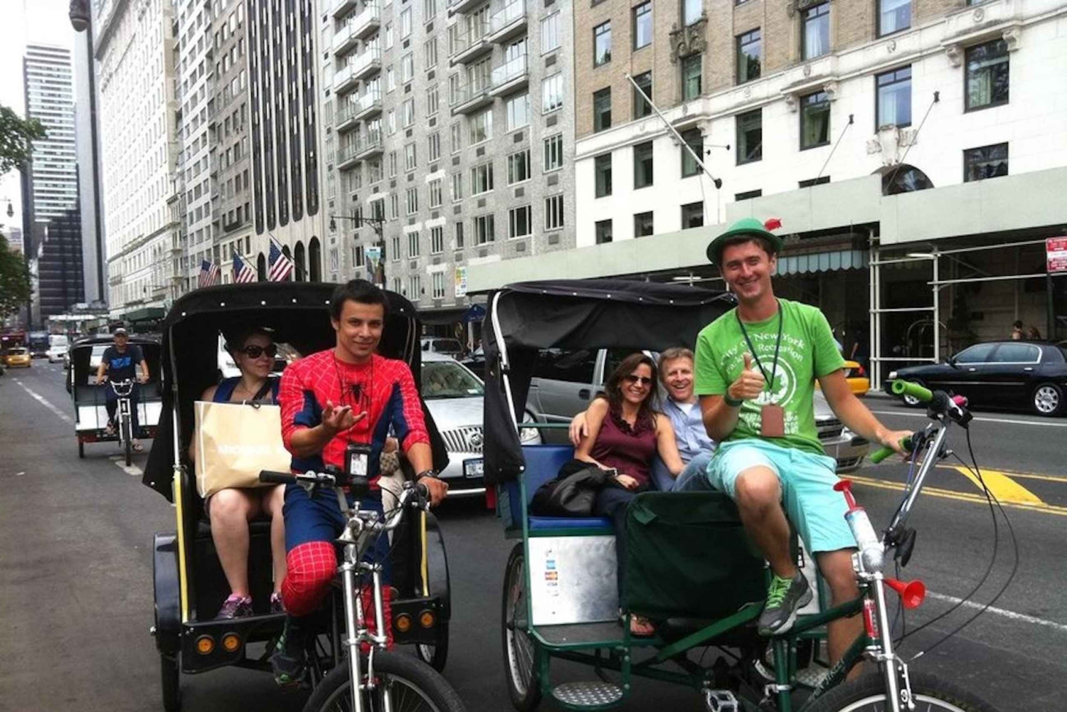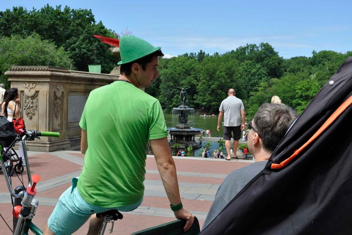 Oplev den filmiske side af New York City med vores unikke og miljøvenlige New York City TV-Show & Movie Locations Tour by Pedicab. Glid gennem de travle gader og maleriske parker i en komfortabel pedicab, der køres af en venlig og kyndig guide. Denne intime og personlige guidet byrundvisning giver et nyt perspektiv på byens ikoniske filmoptagelsessteder, så du kan se og opleve magien i dine yndlingsfilm og tv-serier på tæt hold. Movie & TV-Show Locations Pedicab Tour tilbyder en unik og underholdende måde at opleve byens mest berømte filmsteder på. Denne tur er perfekt til par, tur med en lille gruppe eller solo-rejsende og kombinerer spændingen ved film med charmen ved en tur i pedicab gennem Big Apple. Der er 3 muligheder: -- 1 times Central Park Movie & TV-Show Locations Central Park har titlen som det mest filmede sted i verden, med cirka 350 film, der er blevet optaget der. Højdepunkter: Enchanted, Home Alone 2: Lost in New York, Elf, Jessy, Gossip Girl, Spider-Man 3, Autumn in New York, When Harry Met Sally, Kramer vs. Kramer, John Wick 1 & 2, Love Story, Serendipity, Night at the Museum, Ghostbusters, Wall Street, Sex and the City, Mr. Popper's Penguins, Madagascar, Glee, Friends og 300 flere :) Den 1-timers tur inkluderer 3 stop, der hver varer ca. 5 minutter, hvor du stiger ud for at gå rundt og se berømte vartegn på tæt hold. Nedenfor er turoptioner, der kun er tilgængelige i de varme måneder. -- 2 timer Central Park og Midtown film- og tv-serie-lokationer Inkluderer lokationer fra Central Park-turen plus Midtown-lokationer. Højdepunkter: The Avengers, Birdman, Annie, Mad Men, The Godfather Part III, The Great Gatsby (2013), North by Northwest, Friends with Benefits, Bride Wars, Crocodile Dundee, Suits, Law And Order, Taxi Driver, Vanilla Sky, Breakfast At Tiffany's, The Day After Tomorrow, Tower Heigst, Seinfeld, How I Met Your Mother, The Dark Knight Rises, Sleepless In Seattle, Affair To Remember og mange flere. Den 2-timers tur inkluderer 6 stop, der hver varer ca. 5 minutter, hvor du kan stige ud og gå rundt og se berømte seværdigheder på tæt hold. Højdepunkter: I Am Legend, Men in Black 3, Rush Hour, Working Girl, Ghost, Die Hard with a Vengeance, Trading Places, Splash, The French Connection, Boomerang, 25th Hour, Blue Jasmine, On the Town, Godzilla, Men In Black, Greencard, The Verdict, Hitch og mange flere. Den 3-timers tur har 9 stop, såsom Ghostbusters Firehouse, Friends-lejlighedsbygningen og Carrie Bradshaws lejlighed.Includes