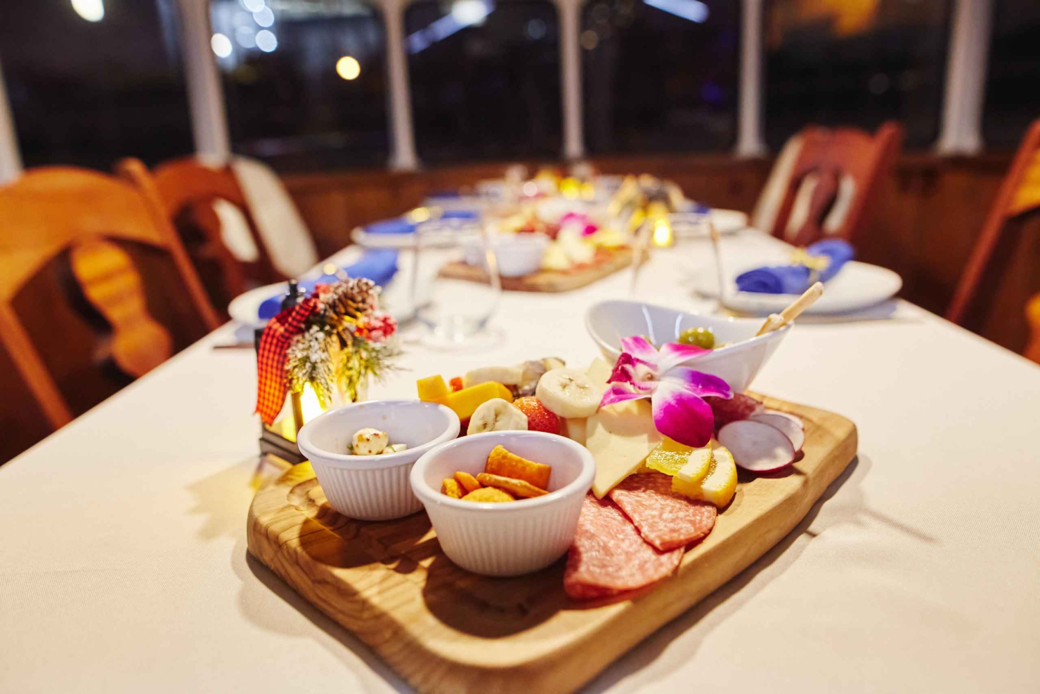 Genieße eine malerische Fahrt entlang des Hudson Rivers und des New Yorker Hafens auf der Fall Foliage Oktoberfest Cruise. Genieße ein klassisches deutsches Oktoberfestmahl mit Bratwurst und saisonalen Bieren.