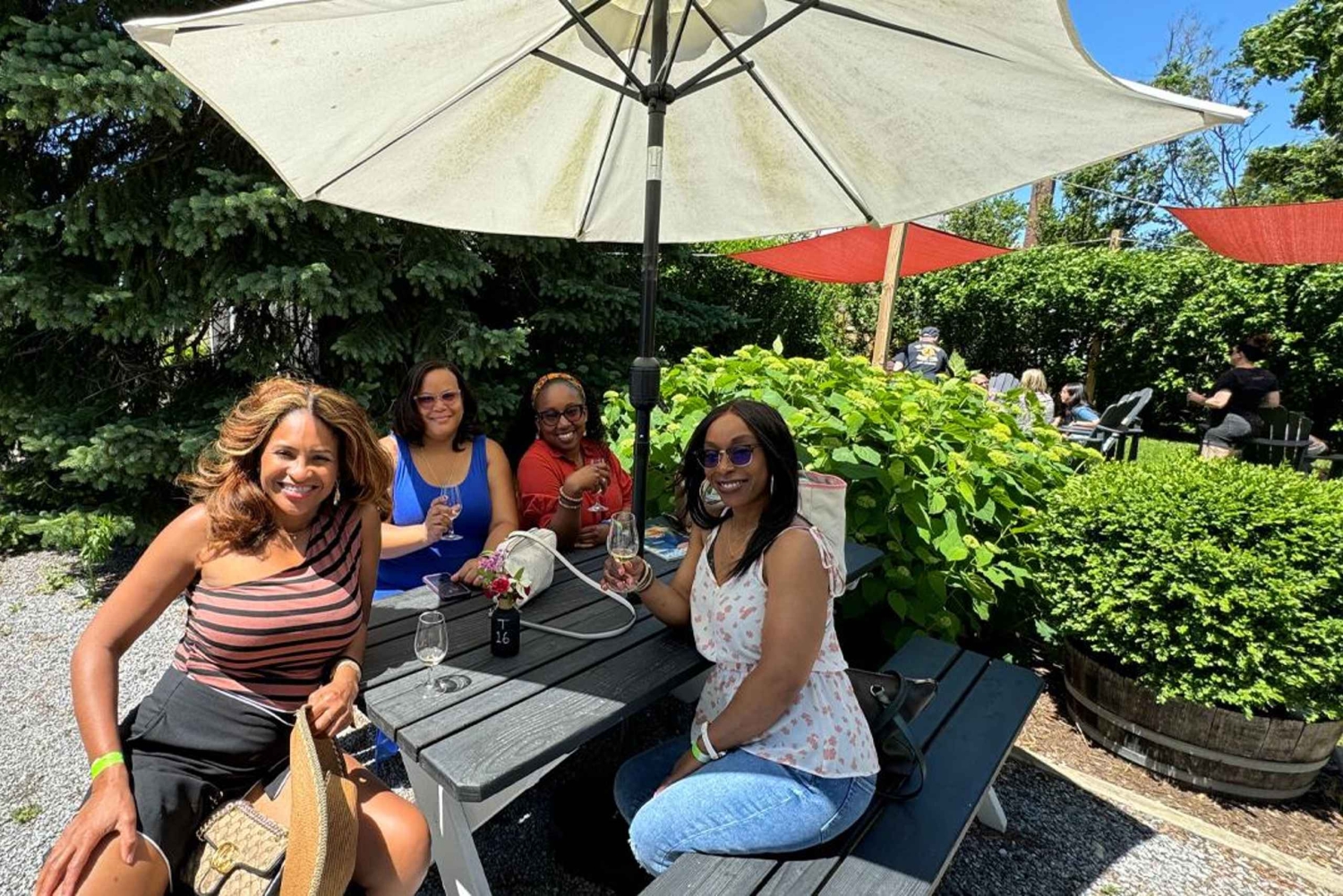 Genieße preisgekrönte Weingüter im Bundesstaat New York mit unvergleichlichem Zugang. Im Gegensatz zu Touren, die die Gäste mit einem Fahrer zu den Weingütern bringen und wieder abholen, kennen wir uns mit Wein wirklich aus. Steig in Midtown Manhattan in einen luxuriösen Reisebus, um bei einer Tagestour durch die malerische Weinlandschaft von New York auf der North Fork von Long Island zu entspannen und großartige Weine in einer intimen Gruppe zu genießen. Der Bus ist ein Reisebus mit 56 Sitzplätzen, USB-Steckdosen an jedem Sitz und einer Toilette. Verbringe mindestens 1,5 Stunden auf jedem Weingut und genieße eine private Verkostung in jedem Lokal. Triff die Winzerinnen und Winzer, spaziere durch die Weinberge und erfahre von deinem fachkundigen Sommelier Guide alles über den Prozess der Weinherstellung. Auf den Weingütern erhältst du exklusive Rabatte beim Kauf von Wein. Während der Tour kannst du bei der ersten Verkostung auf dem Weingut auch kleine Snacks genießen, die zu den Weinen passen. Ein dritter Halt wird auf einem berühmten Bauernmarkt eingelegt, wo du frisch gebackene Kuchen, regionale Produkte und andere Leckereien kaufen kannst. Am Ende der Tour wirst du wieder in Manhattan abgesetzt. Du musst mindestens 21 Jahre alt sein, um teilnehmen zu können.Includes
