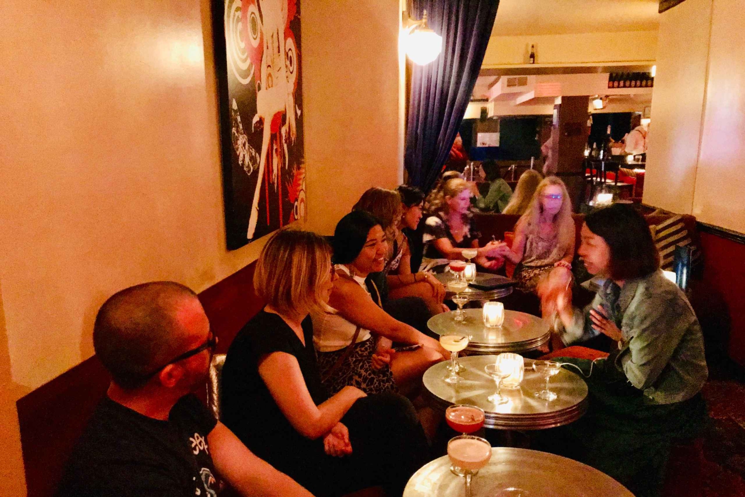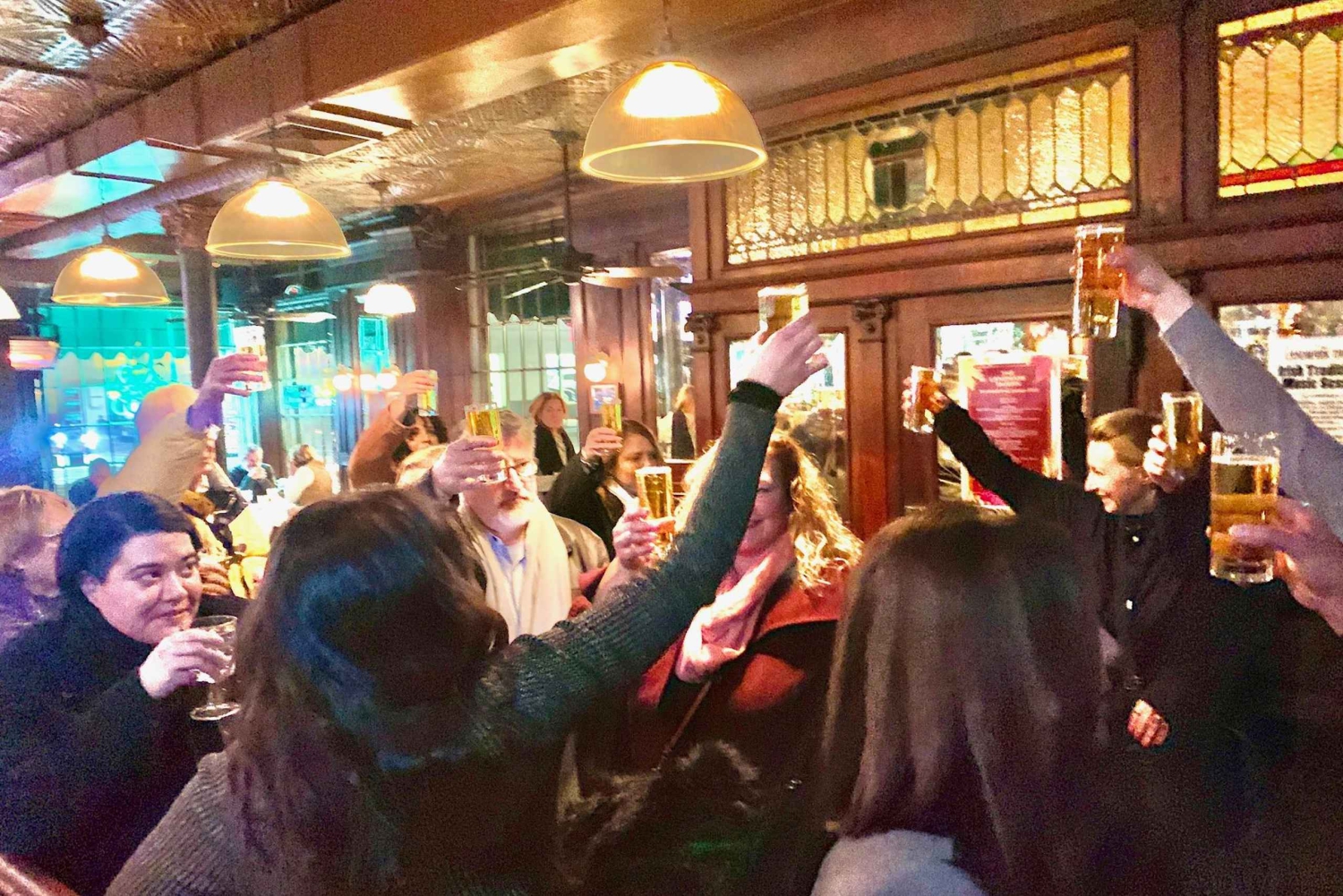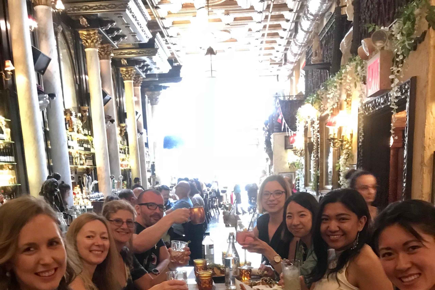 Lähde humalaiselle matkalle alkoholijuomien jäljille ja pääse barrikadeiden läpi, kun seuraat maahanmuuttajien etenemistä kohti amerikkalaista unelmaa kieltolain aikana. Aloitamme yhdellä New Yorkin moderneista salakapakoista, jossa esittäydymme ja nautimme cocktailin. Toisessa paikassa tutustutaan kieltolain taustalla vaikuttaneisiin tekijöihin, keskitytään kultaisen ajan naisiin ja liikkeeseen, joka nosti öljykuninkaan valtaan, samalla kun syöt ja juot. Matkan päätteeksi opas vie sinut yhteen New Yorkin viimeisistä 1920-luvun salakapakoista, jossa kuulet tarinoita ajan tunnetuimmista gangstereista ja pahamaineisista salakuljettajista ja keskustelet kieltolain äkillisestä päättymisestä. Viimeisellä pysäkillä on avoin baari klo 20.00–24.00 ja eksklusiivinen näkymä pallon pudotukseen 12 korttelin päässä.Includes