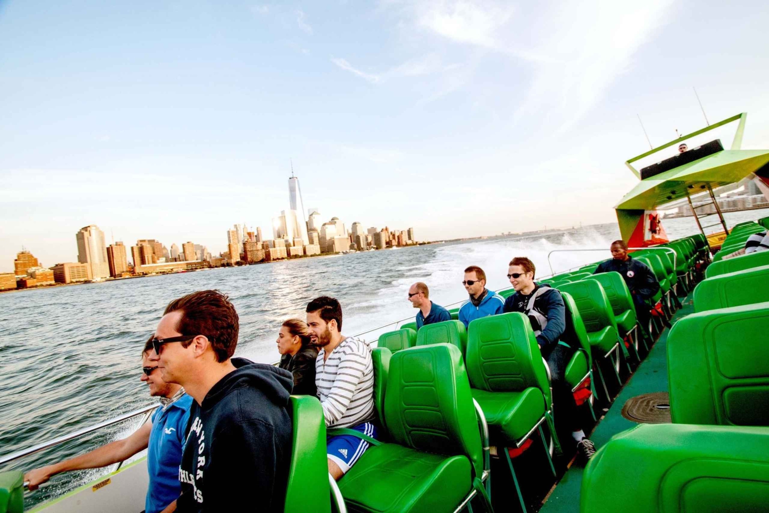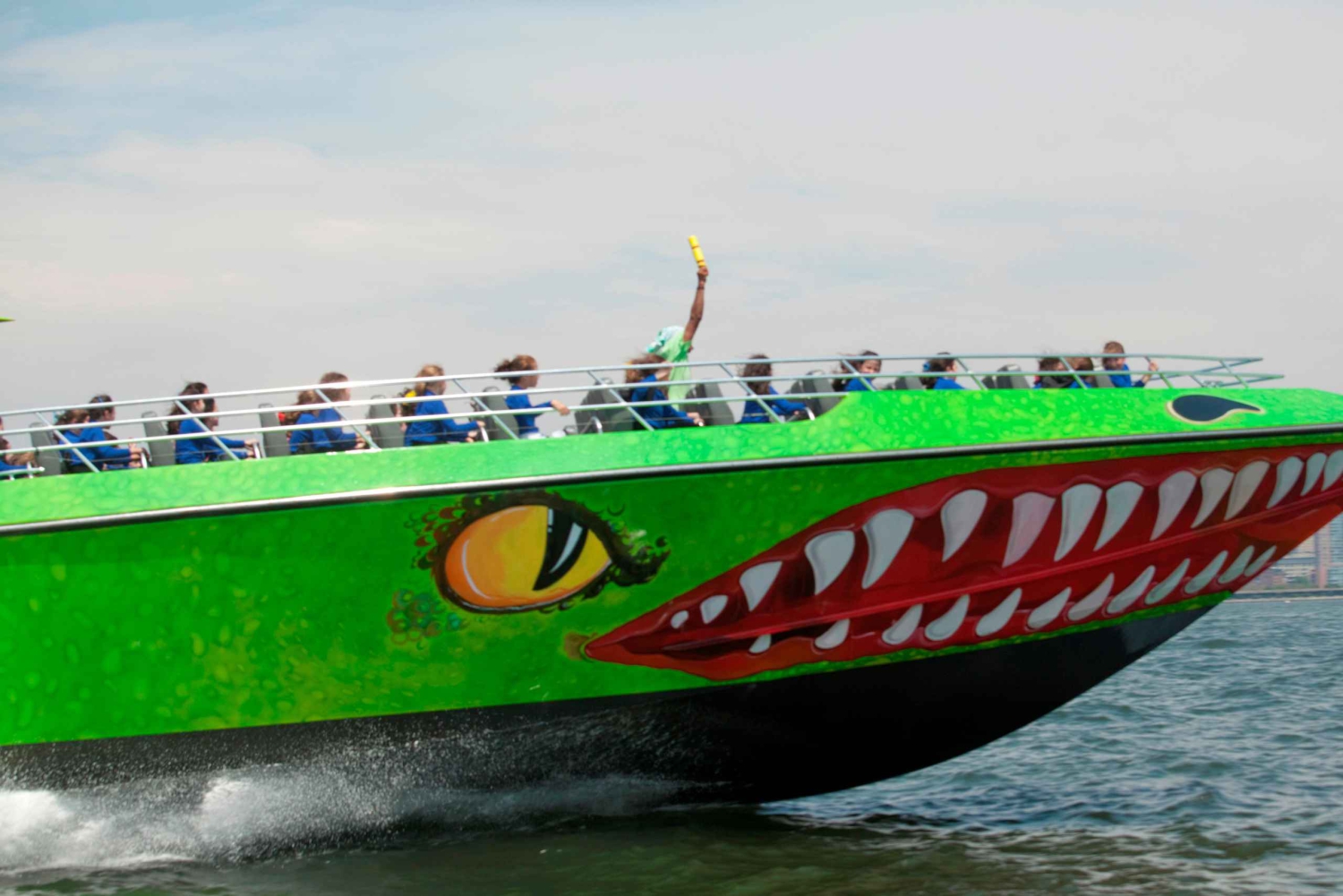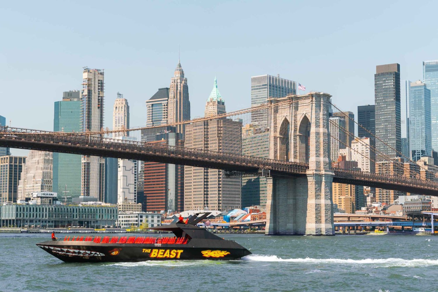 Visita il porto di New York a bordo di The Beast, un motoscafo da 21 metri costruito su misura e alimentato da un motore a reazione che esplode di energia lasciandosi tutti gli altri alle spalle! Il capitano ti porterà a una velocità di 72 km/h in un emozionante giro fino alla Statua della Libertà. Scegli tra i punti di partenza downtown o midtown. È l'attrazione più emozionante di New York: un'avventura bagnata e selvaggia attraverso il porto che ti farà tenere il cappello ben saldo per 30 minuti indimenticabili. Sorvolerai il leggendario skyline della città e i suoi grattacieli iconici a una velocità mozzafiato. Fermati per ammirare da vicino la Statua della Libertà, riprendete fiato e poi torna al molo 83 (opzione centro città) o al molo 16 (opzione centro città). Se parti dal centro città, dopo il giro, vai al Pier 81 BEAST'ro per mangiare, bere e acquistare esclusivi prodotti BEAST per mantenere alta l'adrenalina!Includes