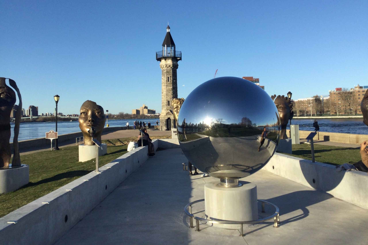 ルーズベルト島の住宅街ウォーキングツアーにご参加ください。かつては刑務所、救貧院、病院があった場所が、公園や歴史的名所に生まれ変わった場所です。マンハッタンのイーストサイドとルーズベルト島の素晴らしい景色を眺めながら、トラムに乗車しましょう。 アメリカ初の通勤用路面電車であるルーズベルト島路面電車に乗車し、イースト川、エド・コッホ・クイーンズボロ橋、ルーズベルト島の素晴らしい景色をお楽しみください。ルーズベルト島の住民である現地ガイドが、島での観察と経験を皆様と共有します。 その後、クリエイティブな思考と研究の活気ある中心地であるコーネル・テクニオン研究所に向かい、その革新的な耐洪水性と省エネ建築をご覧ください。ハイテク新興企業の発展を支援するという、この施設の使命についてお聞きください。 ルーズベルト島の歴史と、ブラックウェル島刑務所に市の犯罪者を収監し、天然痘病院に天然痘患者を隔離するという当初の目的について学びましょう。管理者が受刑者の健康と安全をいかに無視したかについての悲劇的な話をお聞きください。 ルーズベルト島の南端近くにあるフォー・フリーダム州立公園に向かい、マンハッタンの高層ビル群のパノラマの景色をお楽しみください。1941年のフランクリン・ルーズベルト大統領の四自由演説を称賛し、大統領の印象的な顔の彫刻をご覧ください。 ブラックウェル家の植民地時代の農家(1796年)をご鑑賞ください。 次に、ルーズベルト島の住民が隣り合って住む、低所得者向けの住宅と高級賃貸マンション、コンドミニアムからなる「ニュータウン」コミュニティ(1969年 - 1973年)の計画と開発について学びましょう。 ニューヨーク市の精神病院があった場所に建つ、オクタゴン・コンドミニアム・アパートメントをご覧ください。調査ジャーナリストで活動家のネリー・ブライが、19世紀後半に精神病院のスタッフによる女性患者への組織的な虐待をどのように暴露したかをご覧ください。 ネリー・ブライを称えるガールパズル記念建造物で、ジャーナリストに敬意を表しましょう。パズルのピースのような、女性の顔をした5つの彫刻をご覧ください。これは、女性の権利を推進し、精神病院の女性患者の権利を擁護したネリー・ブライの功績を称えるものです。 ツアーの最後は、高さ50フィートのブラックウェル島灯台で終了いたします。これは、1872年にイーストリバーの船舶の航行のために建てられた、ニューヨーク市と国の名所です。Includes