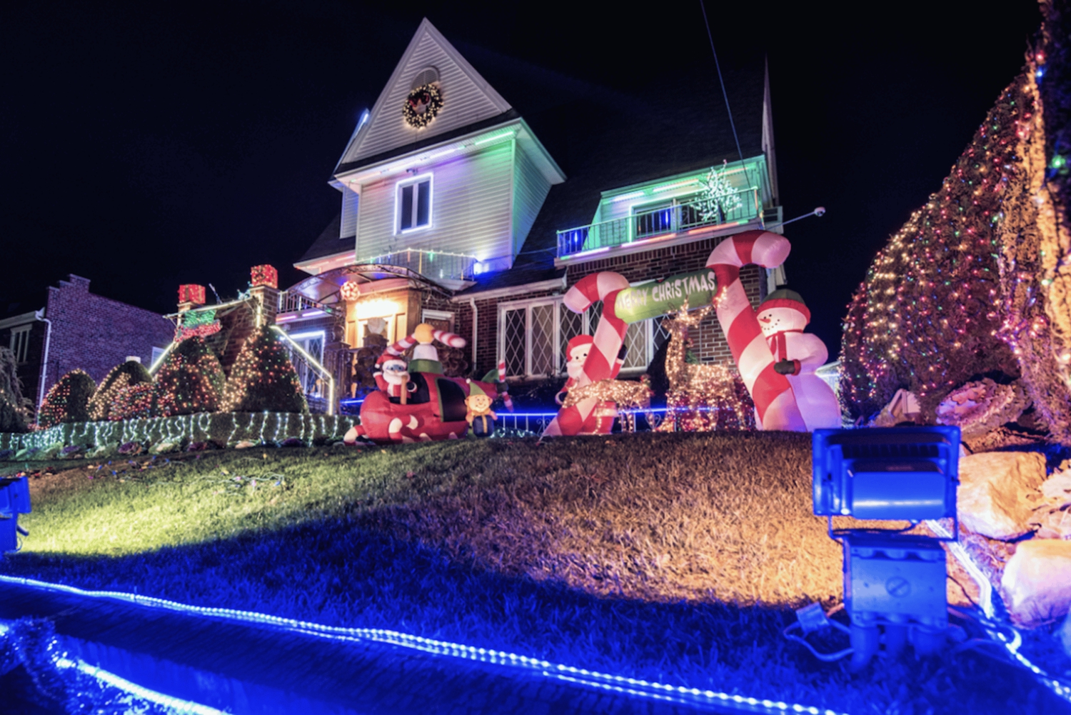 - 家々が美しいクリスマスの飾り付けでライトアップされるダイカーハイツ。