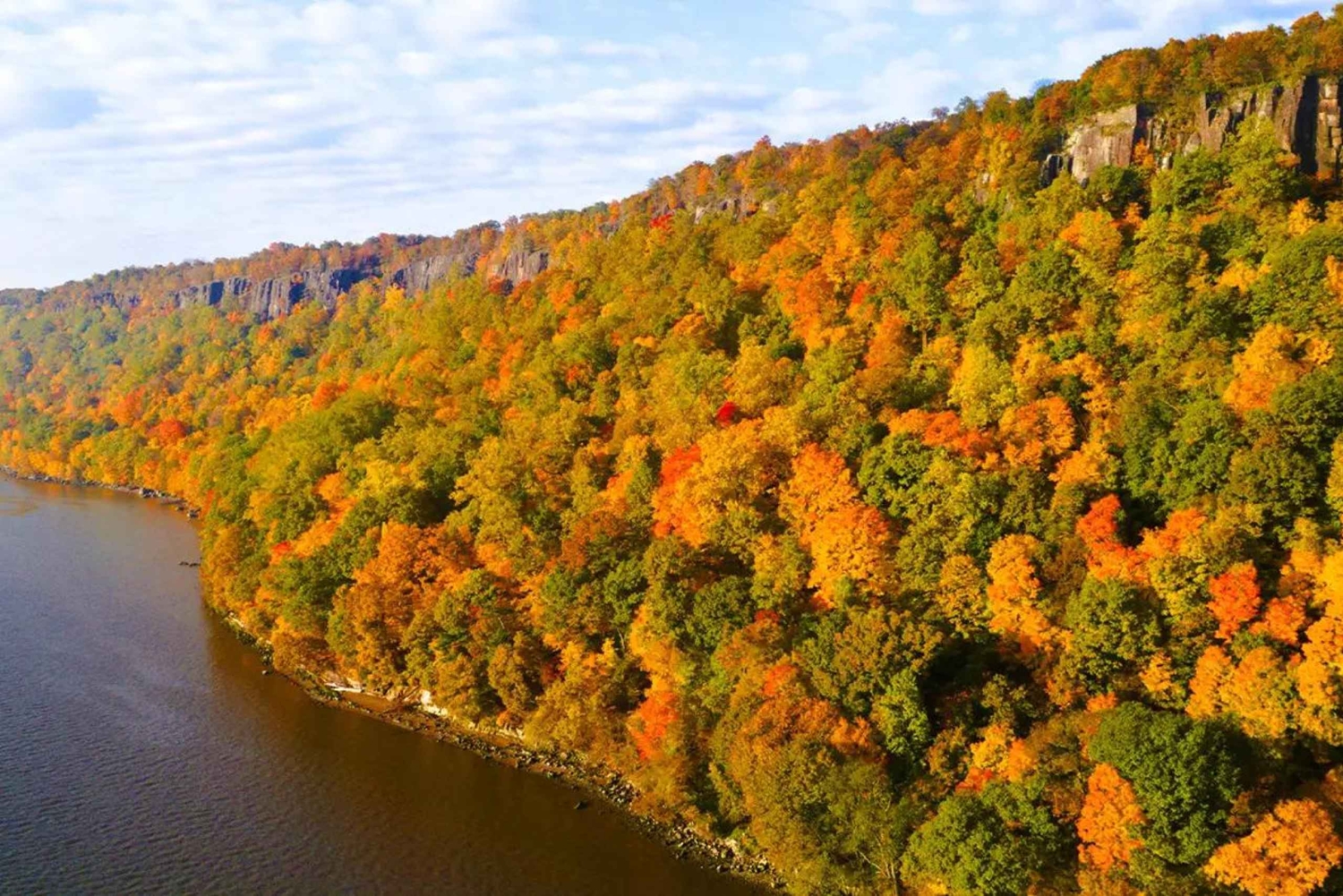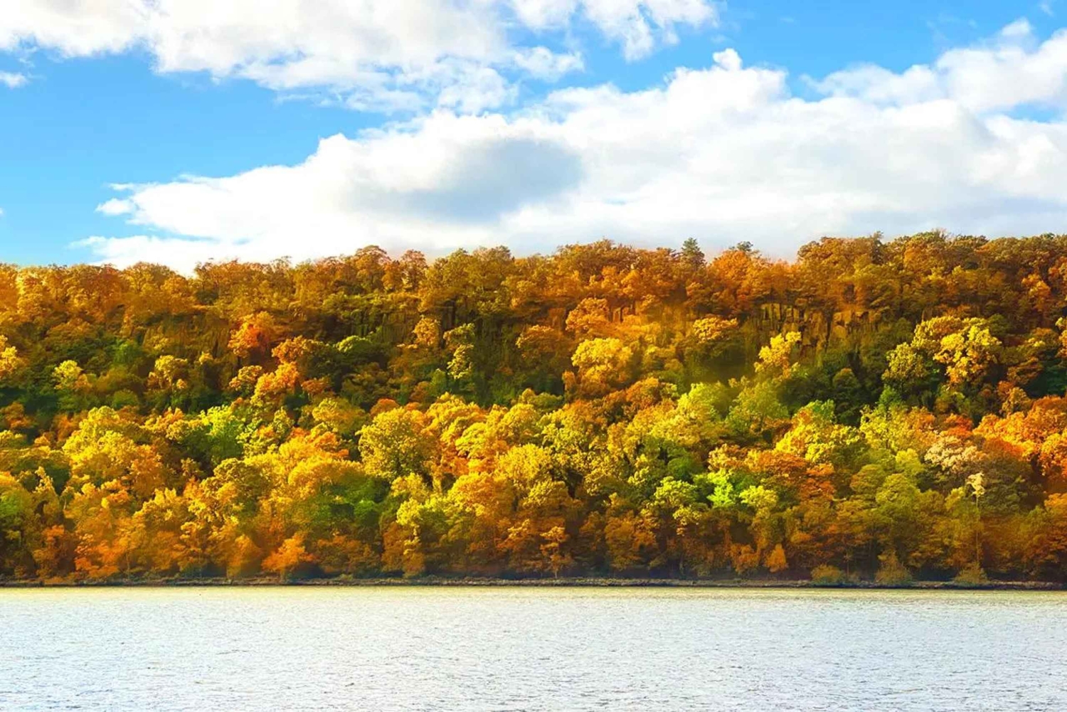 Ervaar de herfstkleuren van New York tijdens een cruise over de Hudson River. Geniet van een panoramisch uitzicht op de Palisade Cliffs, Met Cloisters en de skyline van Manhattan.