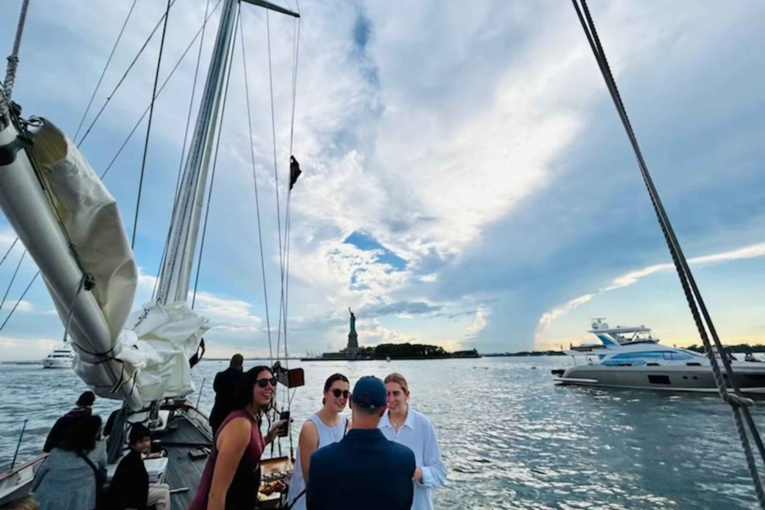 Vaar langs het Vrijheidsbeeld, Ellis Island, de Brooklyn Bridge en de sprankelende skyline van Manhattan vanaf de beste plek in de haven. Geniet van handgemaakte cocktails, wijn, bier en lichte snacks van de volledige bar terwijl je van het uitzicht geniet. Maak foto's die perfect zijn voor een ansichtkaart en nieuwe hoeken van de stad die zelfs locals zelden zien. Stap weg van de drukte en ervaar een luchtige, ontspannen kant van New York aan boord van het grootste zeilschip. Stap aan boord van Clipper City, het grootste passagierszeilschip van New York, voor een avondzeiltocht onder de glinsterende skyline. Kijk hoe de stad verandert in een oogverblindend panorama van lichten, met de Brooklyn Bridge, het Vrijheidsbeeld, Ellis Island en de skyline van Manhattan die schitteren tegen de nachtelijke hemel. Deze zeiltocht is perfect voor een romantische avond of een gezellig samenzijn en combineert de glinsterende lichten van de stad met een onvergetelijke sfeer. Geniet van cocktails en lichte hapjes terwijl het zachte schommelen van de haven de sfeer bepaalt. Deze bar wordt door Downtown Magazine geprezen als 'mogelijk de leukste cocktailbar in NYC'.Includes