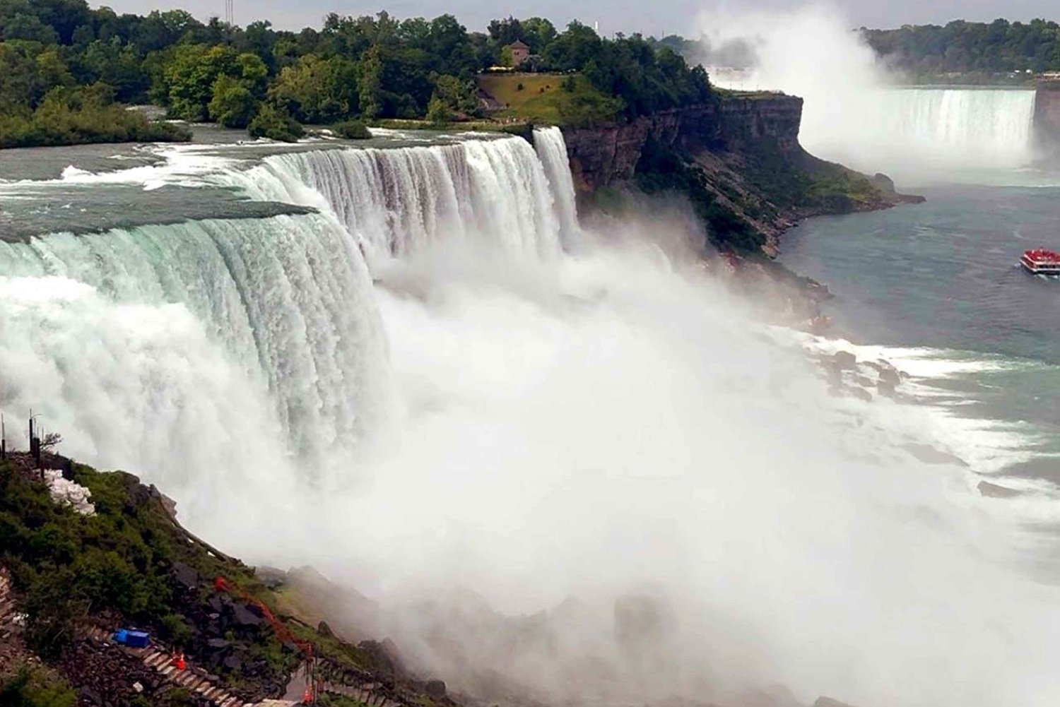 De amerikanske Niagarafallene er et naturens underverk som du må oppleve, de er et helt fantastisk turistmål som fortjener å bli opplevd, fra spennende båtturer til utsiktspunkter med imponerende utsikt vil gjøre turen din til en uforglemmelig opplevelse. Turen fra New York til Niagarafallene begynner med henting på The Manhattan Hotel ved Times Square, kl. 23.00. Reisen fra New York til Niagarafallene dekker en avstand på 650 kilometer, med en varighet på omtrent 6 og en halv times landreise, derfor vil det bli gjort stopp for å hvile og spise frokost. Når vi ankommer Niagara Falls, vil du føle naturens magi, og vi begynner turen til de forskjellige fossefallene og utsiktspunktene, hvor du vil bli blendet av deres skjønnhet. Vi besøker American Falls, Horseshoe Fall og Bridal Veil Fall, som ligger i det nordlige USA, og her får du tid til å ta bilder og betrakte den naturlige skjønnheten som omgir deg. Senere har du tid til å se deg rundt ved fossen, og du kan eventuelt ta en omvisning med båt, som tar deg helt nær fossen for bare 30 USD. Dere får også tid til å kjøpe suvenirer og spise lunsj for å forberede dere på hjemturen til Manhattan. Vi forlater fossen ca. kl. 15.00 og er på Manhattan ca. kl. 22.00. Gi deg selv muligheten til å oppleve en uforglemmelig opplevelse, du fortjener det.....Includes