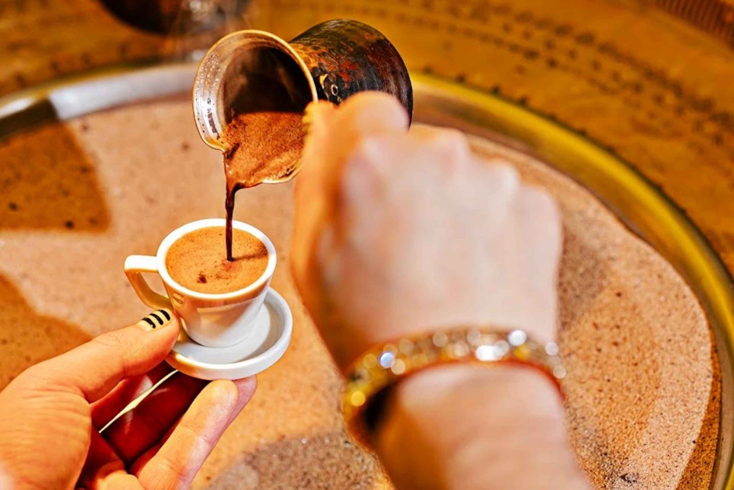 Przygotowanie świeżo zmielonej kawy po turecku Tradycyjna metoda parzenia cezve Podawanie kawy ze słodkimi przysmakami Wróżenie z fusów kawyEasy cancellation