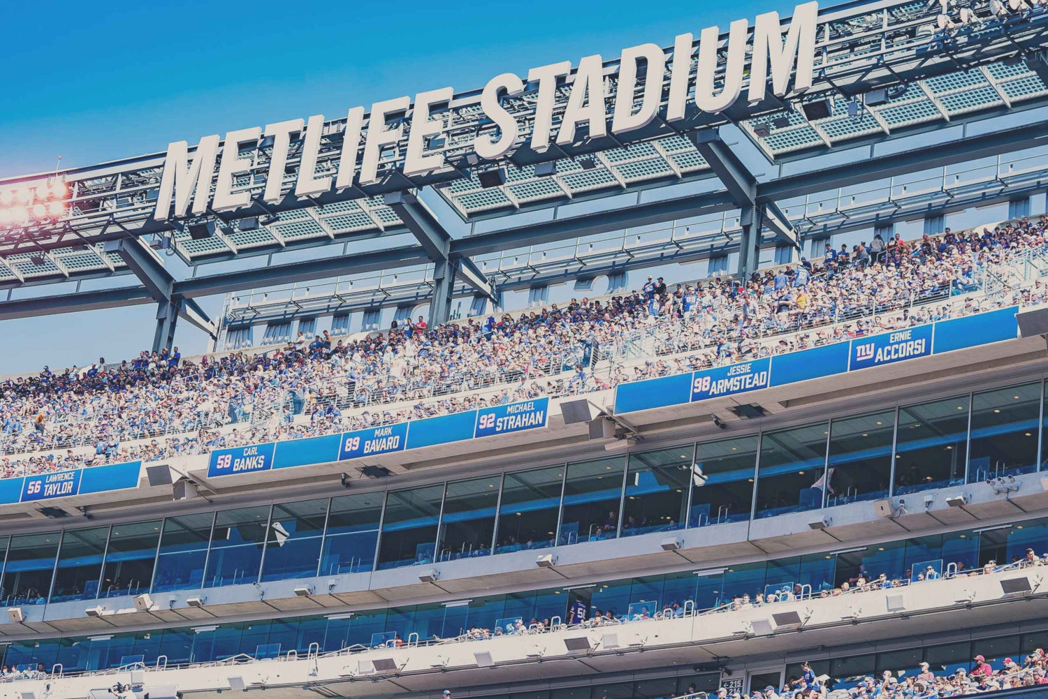 Погрузитесь в легендарный мир New York Giants, где традиции и азарт сочетаются в каждой игре. Благодаря богатому наследию, включающему четыре чемпионата Суперкубка, «Джайентс» воплощают блеск, гламур, а также сердце нью-йоркского футбола. Посещение MetLife является обязательным для любого поклонника футбола! Стадион MetLife — это современное чудо, предлагающее отличные удобства и комфортабельные места. Благодаря впечатляющим линиям обзора и гигантским видеоэкранам, фанаты могут погрузиться в действие из любой точки стадиона. Быть частью спортивной сцены Нью-Йорка добавляет дополнительный уровень волнения, интенсивность и страсть нью-йоркских спортивных фанатов не имеют себе равных, и испытать это действительно особенно. Тейлгейтинг на стадионе MetLife — обязательное мероприятие для любого посетителя Нью-Йорка. Тейлгейтинг на стадионе Giants — это легендарное событие. Погрузитесь в атмосферу праздника вместе с местными жителями и испытайте игровой день, как истинный фанат Giants. Напитки, музыка и вкусная еда всегда под рукой — это ваш шанс стать частью семьи Giants!Includes